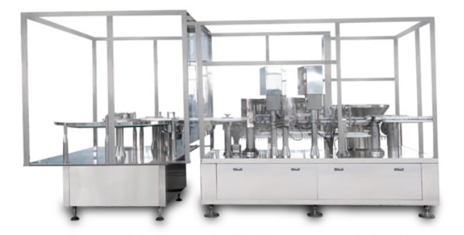 本機符合“cGMP”要求,適用於西林(lín)瓶的粉劑分裝和上塞,也(yě)可以用於其它類似(sì)的粉劑分裝上塞。是粉針生產線中計量分裝主機。