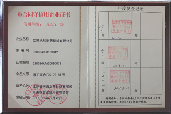 被海門市人民政府評為“質量信得過企業”、“YONGHE”商標被南通市工(gōng)商行政管理局評(píng)為知名商標(biāo)