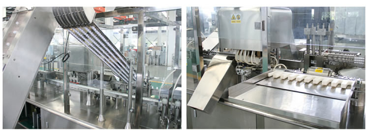 本機通過自(zì)動上瓶、底部灌裝、自動上蓋、熱熔式底部封口、氣動手指夾送出(chū)瓶等一係列特製工序(xù)完(wán)成灌封工作,可做為國內口服(fú)液灌裝生產理想設備。